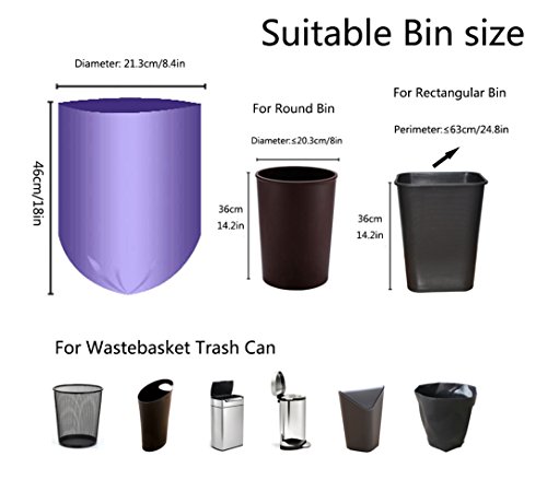- Measurement: Width:13 inches,Height:18 inches;0.8-1.2 gallon trash bag fit small size trash can: round wastebaskets with diameter ≤ 8”, height ≤ 14.2”, rectangular or other garbage bins with perimeter≤24.8”,height≤14.2”.
