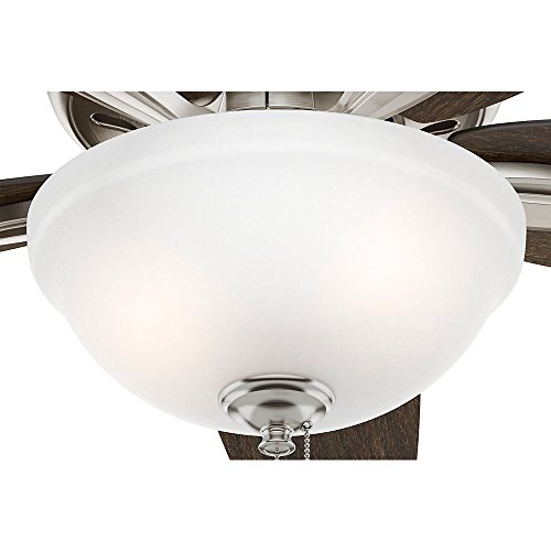 Through its casual style and charming appearance, the new some will compliment your decor without overpowering it. Clean line details work together throughout the fan body, blade irons and bowl light kit to create a coherent design with wide appeal. The 42-inch blades and low-profile motor housing make this fan a perfect fit for Small rooms or low ceilings. And remember, with the new some collection you have the freedom to choose from many different sizes, light kits and other options to maintain a consistent look throughout every room in your home.Feature