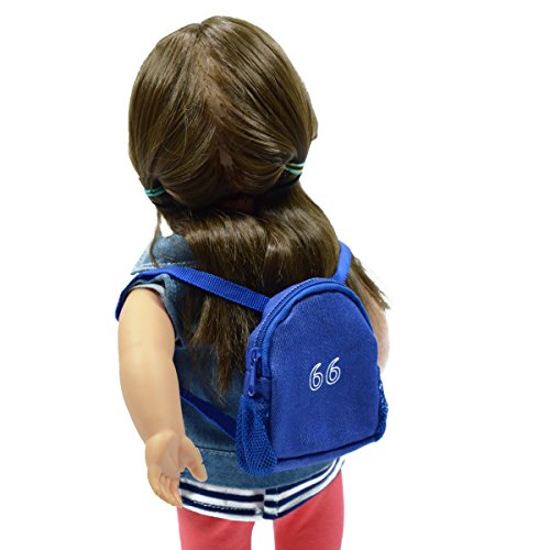 - Blue Backpack with 2 side mesh pockets made to fit your 18 Inch Doll