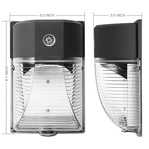 Automated dusk-to-dawn photocell functionality.Light OFF at sunrise/daytime and light ON at sundown/night.Die-casting of aluminum housing with clear lens,Anti-corrosion,Waterproof IP65,5000K Daylight for Outdoor illumination.