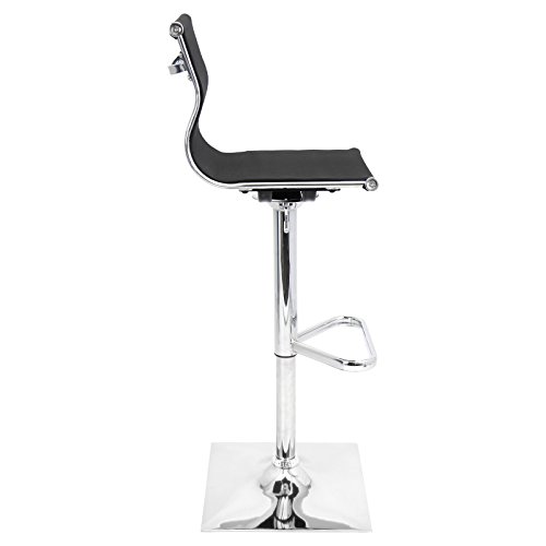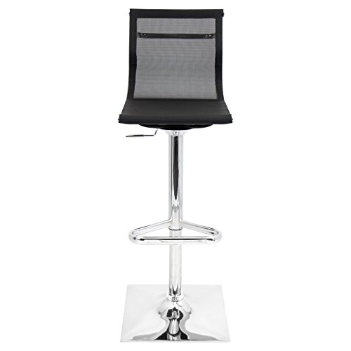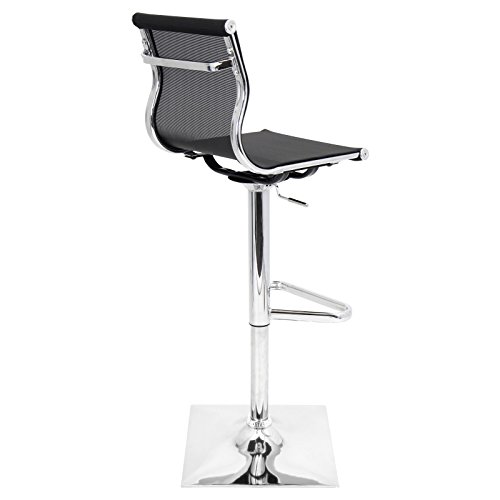 - Feature : Curved mesh seat and back for comfort and style / Black mesh seat and back / Polished chrome frame with built-in footrest / Swiveling, adjustable seat / Dimensions: 17W x 15.5D x 38.25-47H inches