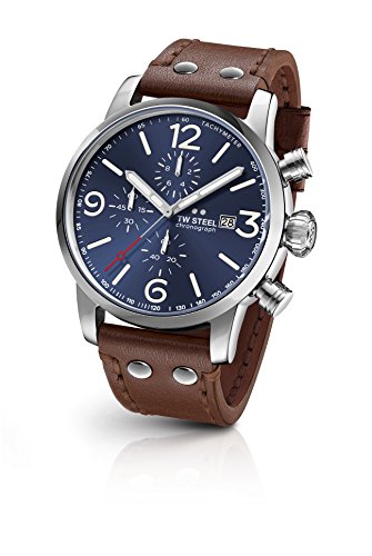 - 48mm Chronograph Movement watch with dark brown leather strap