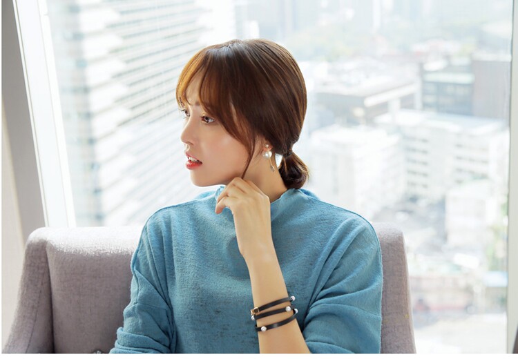 Korean drama "she is very beautiful" celebrity models Gao Junxi with black pearl earring s