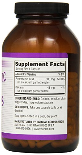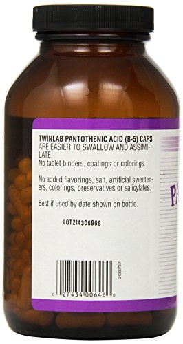 -. Title : Twinlab Pantothenic Acid (B-5) Caps, 500mg, 200 Capsules (Pack of 2)