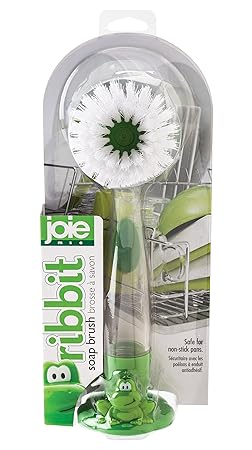 [Product Information]- Joie's Ribbit Frog Soap Brush for cleaning dishes, bakeware, delicate glassware and stemware, pots and pans, and nonstick cookware without scratching