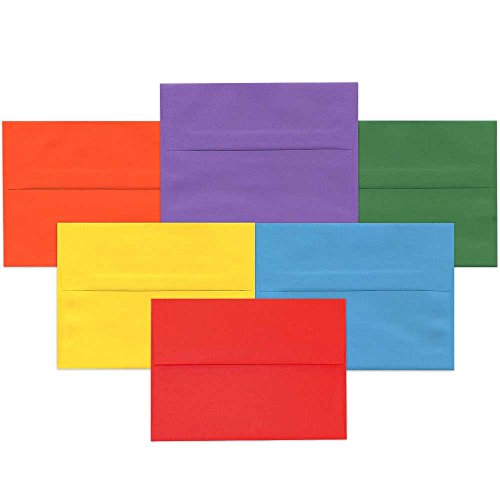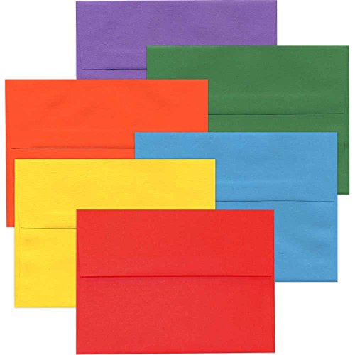 -. Feature : Assortment of Colored A7 Envelopes: Blue, Red, Orange, Green, Purple, and Yellow. / Size: A7 (5.25 x 7.25 inches) / Quantity: Assortment includes 25 envelopes of each color, for a total of 150 envelopes (6 Color Packs) / Envelopes are cut from smooth 24 lb. paper, and have a Straight Flap with gum closure. / Perfect for Invitations, Greeting Cards, Gifts, Announcements, Thank You cards, RSVPs and much more!