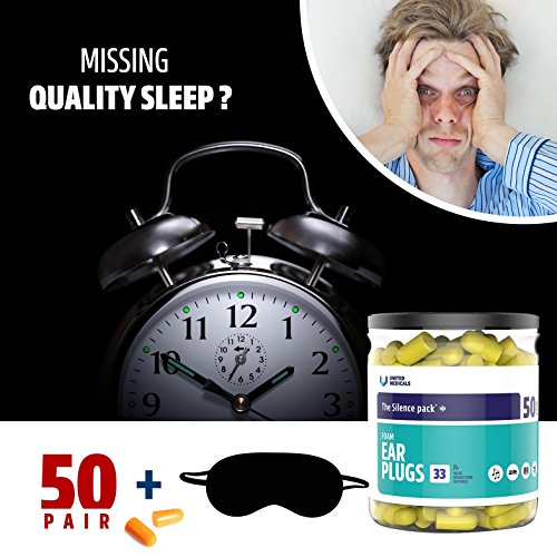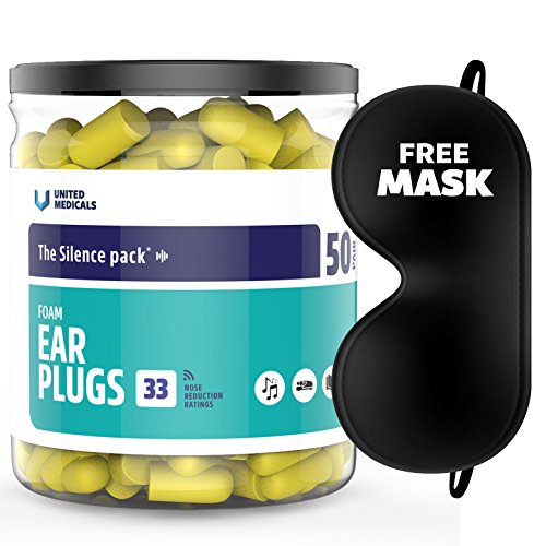 United Medicals Ear Plugs Soft Foam Earplugs (pack of 50)+Free 3d Sleep Mask