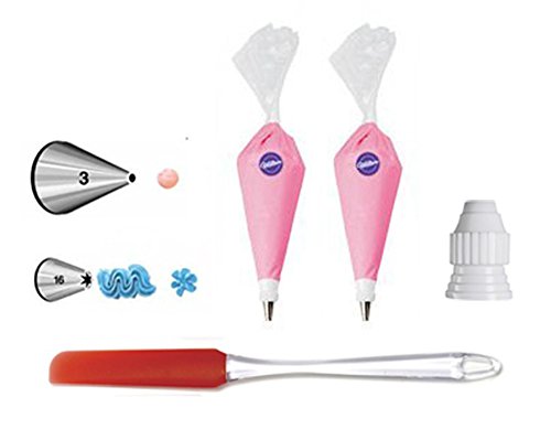 - DECORATE YOUR CAKE LIKE A PRO: #3 Round Piping Tip for icing, outlining, lettering, dots, balls, beads, stringwork, lattice & lacework. #16 Open Star Piping Tip for stars & drop flowers - finely cut teeth create decorations with many ridges. (Stainless steel tips work with bags & coupler). 12 Inch Disposable Piping Bags are flexible plastic - just use the bags, then toss. Recipe and cake decorating instruction sheet is included!