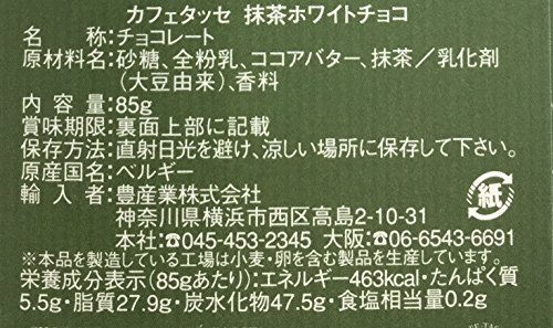 原材料:砂糖、全粉乳、ココアバター、抹茶/乳化剤(大豆由来)、香料