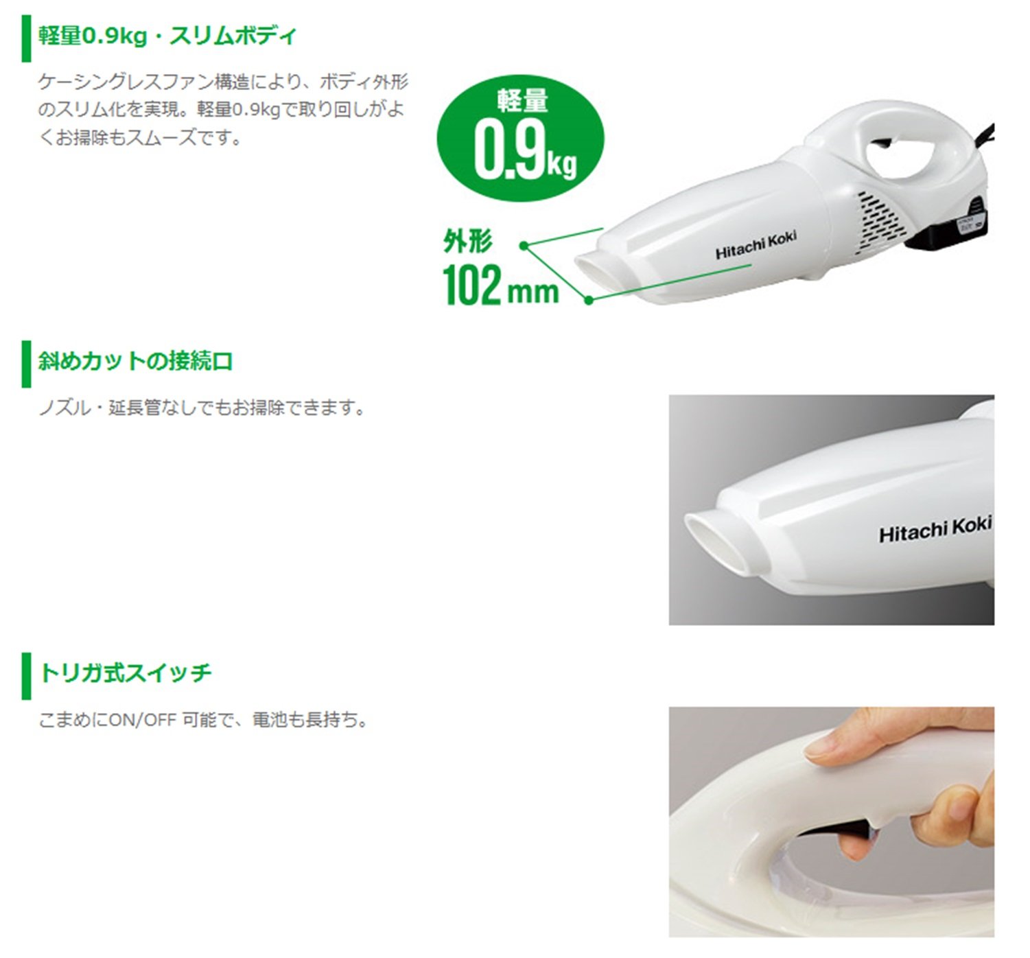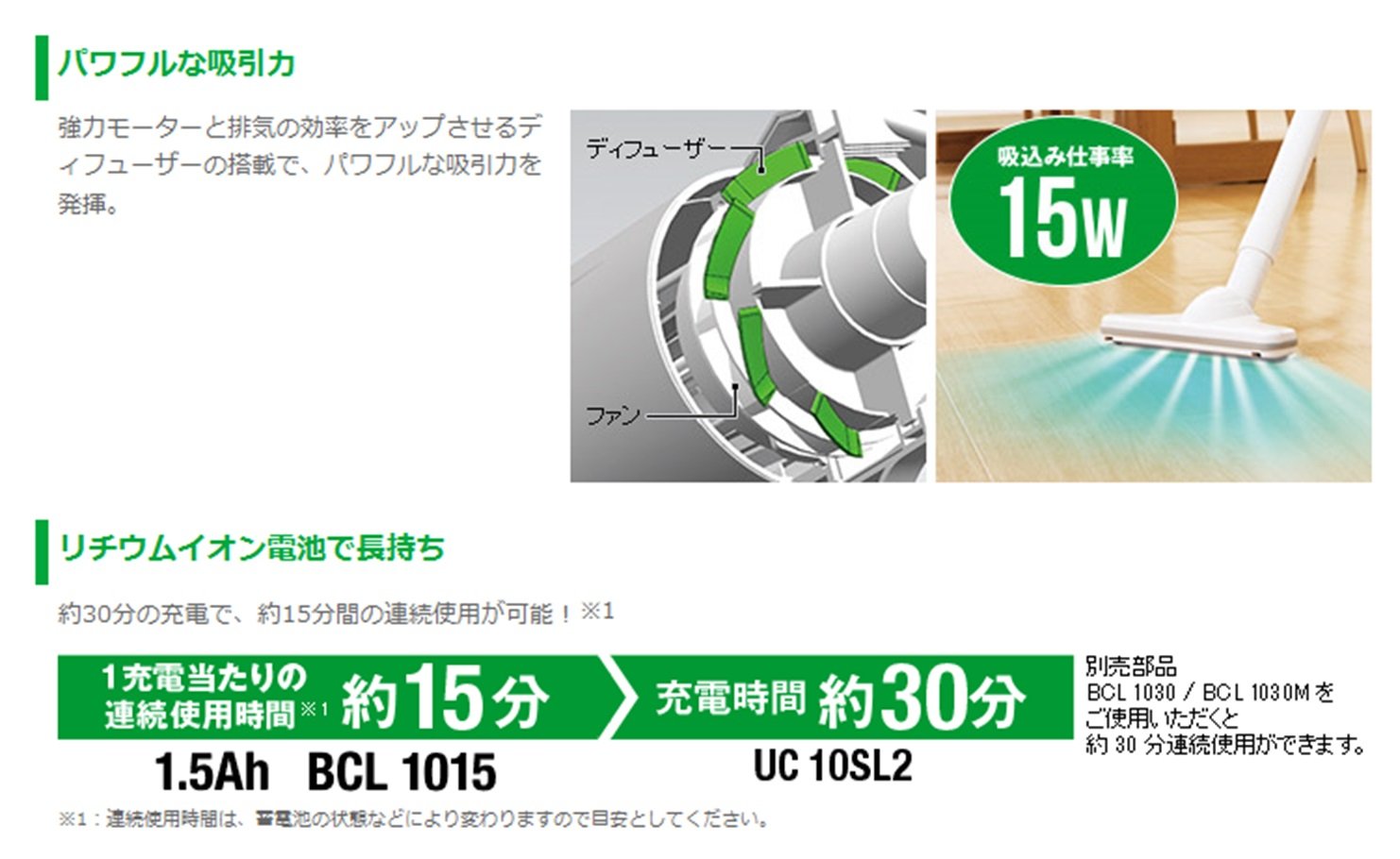 Powerful suction power! Suction power 15W
