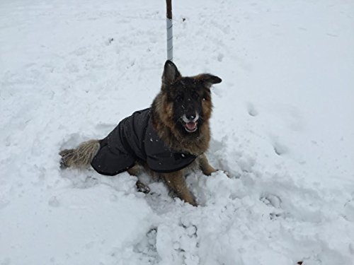 -. Feature : Buckles around chest and neck allow for precision sizing and fit / Nylon exterior keeps rain and snow away from your dog / Fleece interior helps keep dog warm / Reflective trim