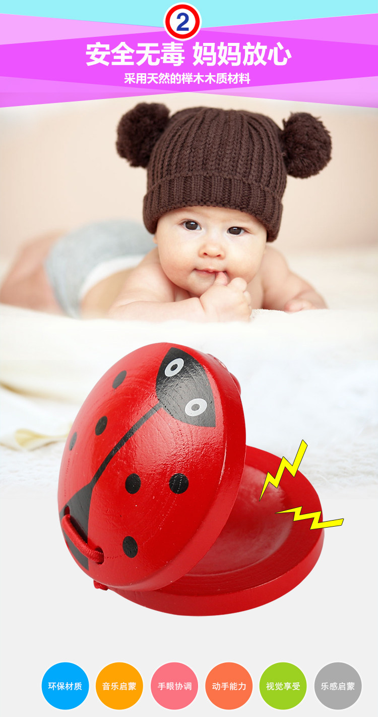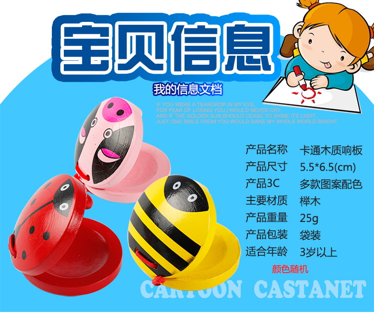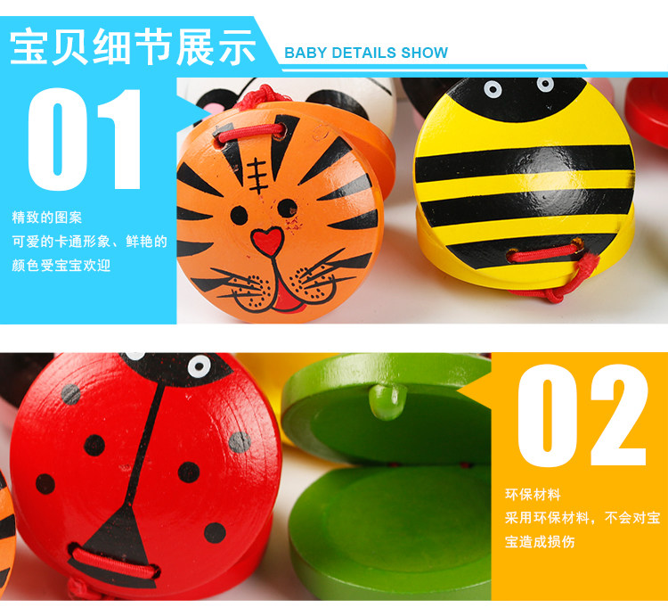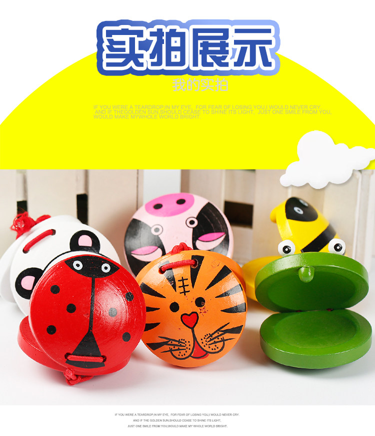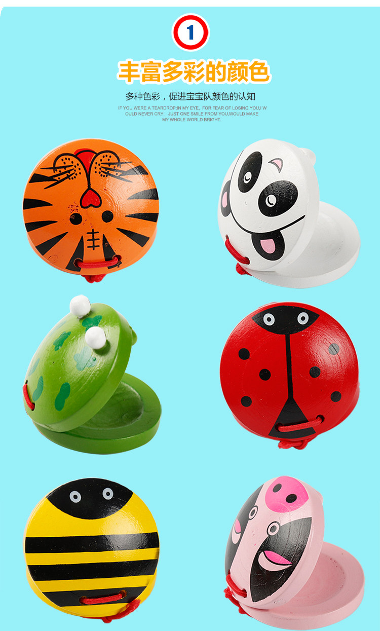 婴儿启蒙乐器儿童打击乐器木制卡通响板动物圆舞板宝宝音乐玩具