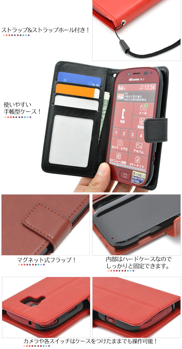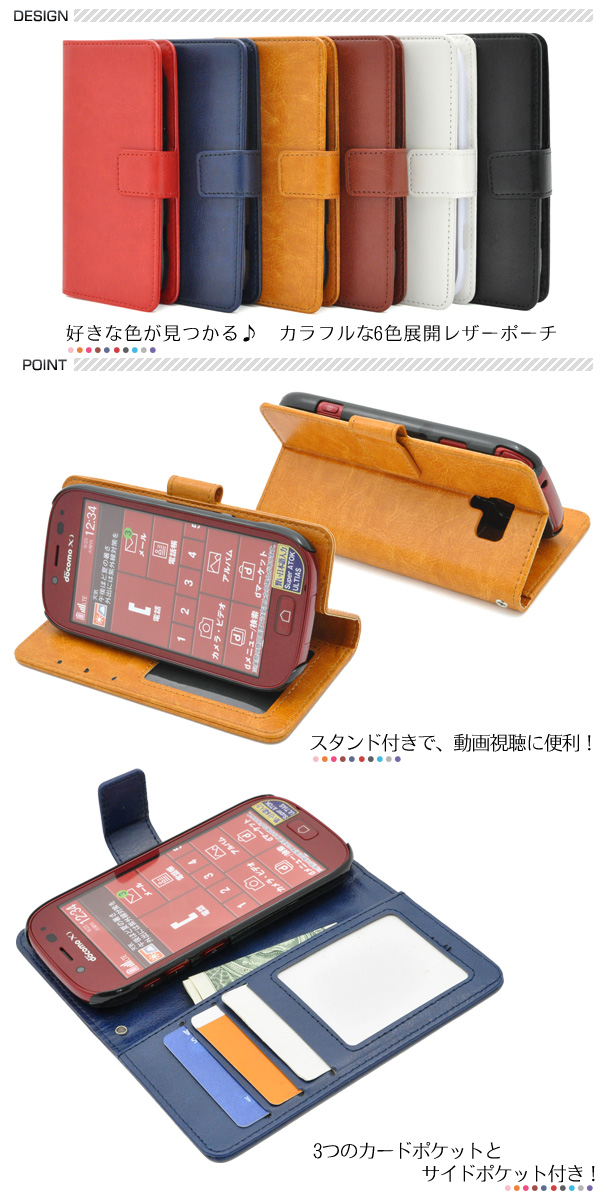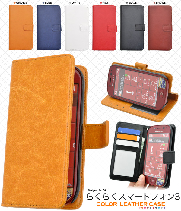 らくらくスマートフォン3 F-06F用カラーレザーケースポーチ