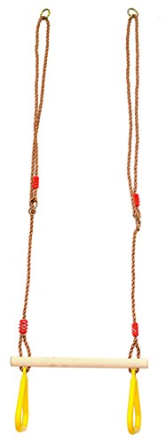 COMINGFIT Indoor Outdoor Wooden Trapeze Swing with Plastic Triangular Gym Rings for Kids