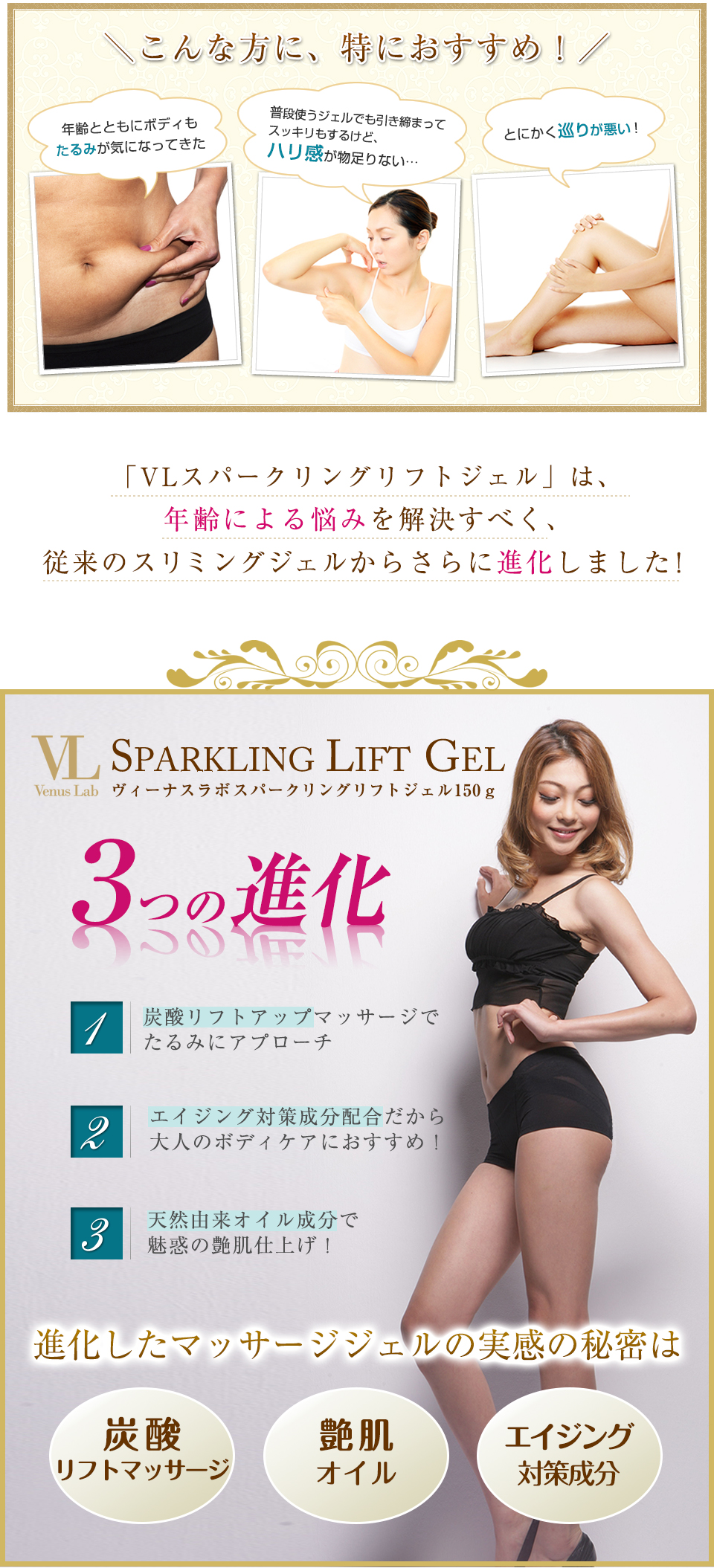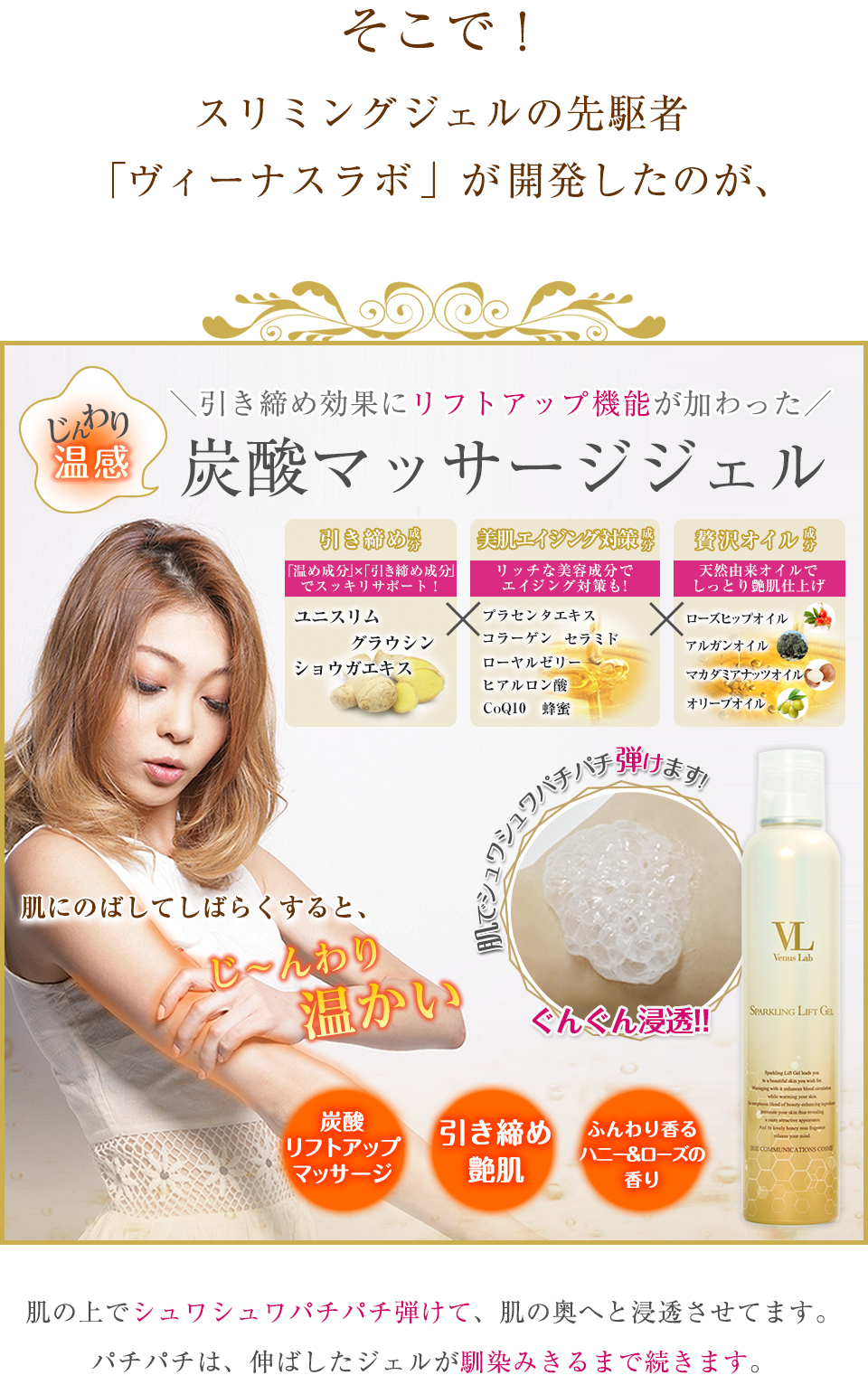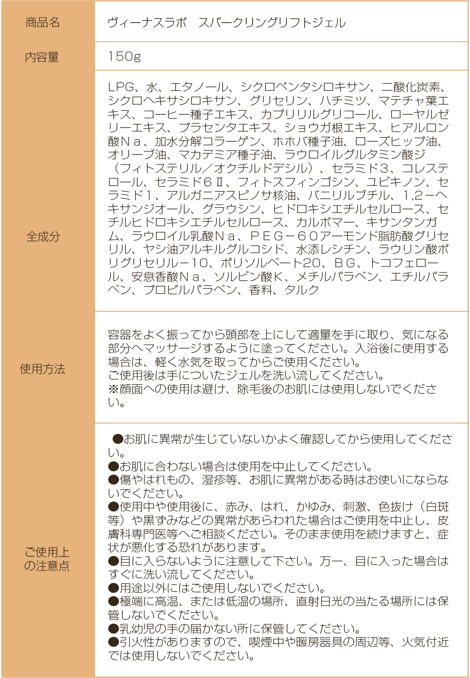 容器をよく振ってから頭部を上にして適量を手に取り、気になる部分へマッサージするように塗ってください。入浴後に使用する場合は、軽く水気を取ってからご使用ください。 ご使用後は手についたジェルを洗い流してください。 ※顔面への使用は避け、除毛後のお肌には使用しないでください。 |
