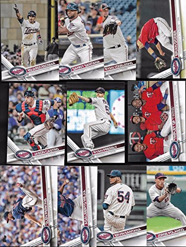 It contains all Twins cards from series #1 and #2 including Joe Mauer, Phil Hughes, Byron Buxton, Brian Dozier, Adalberto Mejia, Jorge Polanco, Danny Santana, Eduardo Escobar, Robbie Grossman, Ryan Pressly, Jason Castro, Ervin Santana, Max Kepler, Eddie Rosario, Kurt Suzuki, Hector Santiago, Tyler Duffey, Jose Berrios, Ryan Vogelsong, Miguel Sano, Glen Perkins, a "Triplet of Twins" card and a Twins Team Card.