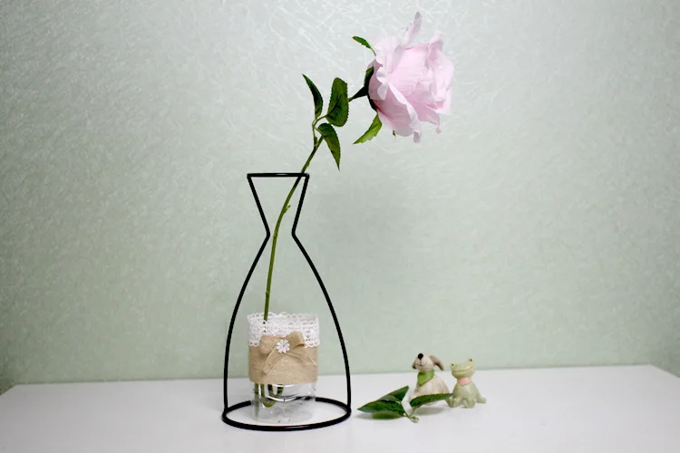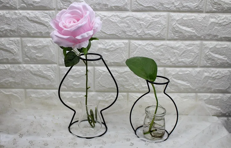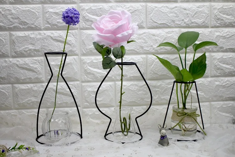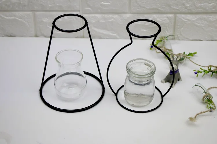 Nordic Style Flower Vase Iron Frame Concise Hydroponics Vases Artistic Sense Simulation Flowers Pots Home Wedding Decoration