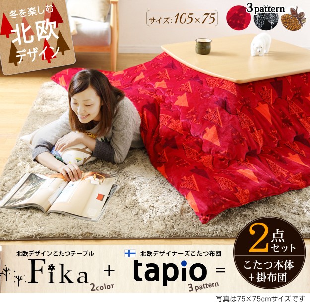 北欧デザインこたつテーブル フィーカ 105x75cm + 北欧デザイナーズこたつ布団 2点セット こたつ テーブル 長方形