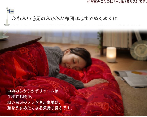 中綿たっぷりのふかふかこたつ布団はフィンランドで活躍するデザイナーとのコラボアイテム。どれもかわいい3柄から。
