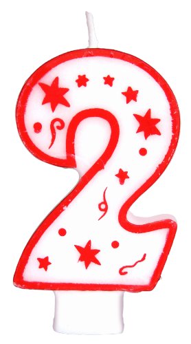 Numeral Birthday Candle with Red Outline, Red Dots and Red Stars (NUMBER 2)