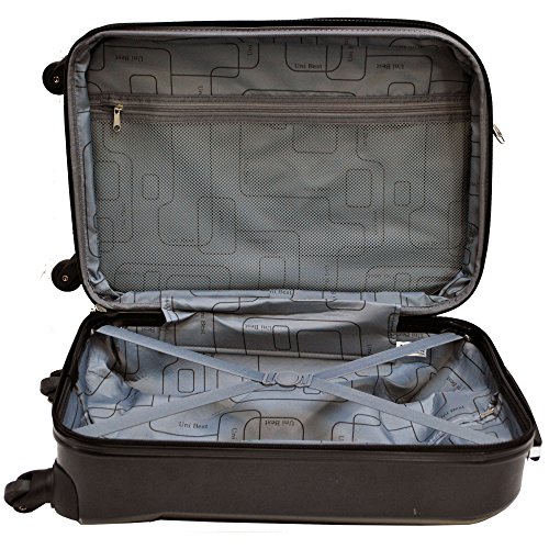 -. Brand : "Uni Best" -. Color : Black -. Department : unisex -. EAN : 0766544818432 -. Feature : Durable ABS + PC material hardshell trolly. 20"H x 14"W x 9"D(Expand to 11"), 6 lbs 6 oz. / Telescopic push-button handle system / A large dual zippered front pocket with padded sleeve for laptop size up to:13.5"x 17", extra pockets for small items, rest room for ipad ...etc / Main compartment expands 2 inches, maximizing storage capabilities.Fully lined interior with tie-down strap on one side and other side with zipped pocket / Specially designed soft touch top carry handle Effortless and all directional Spinner wheels -. Model : 08001 Black -. PackageQuantity : 1 -. ProductGroup : Apparel -. ProductTypeName : LAGE -. Size : 20"H x 14"W x 9"D(Expand to 11") 6 lbs 6 oz. -. Title : ABS + PC Hardshell Spinner Wheel Carry-On Lage -. UPC : 766544818432