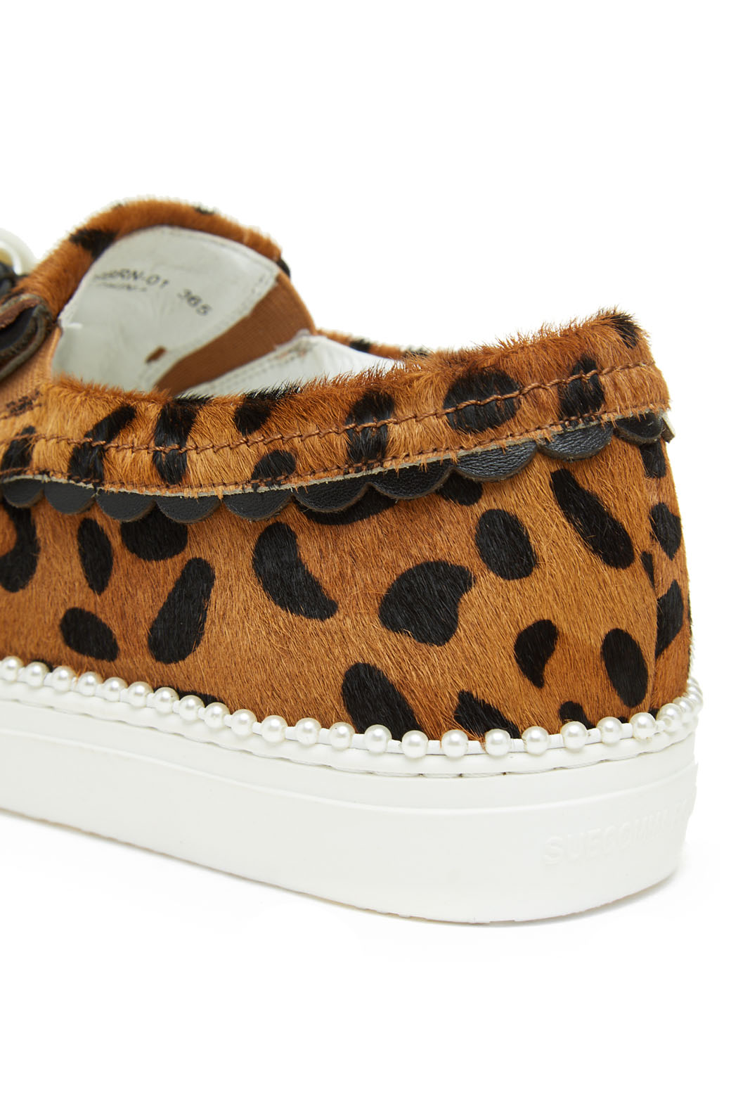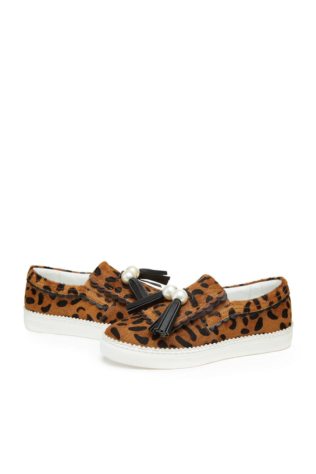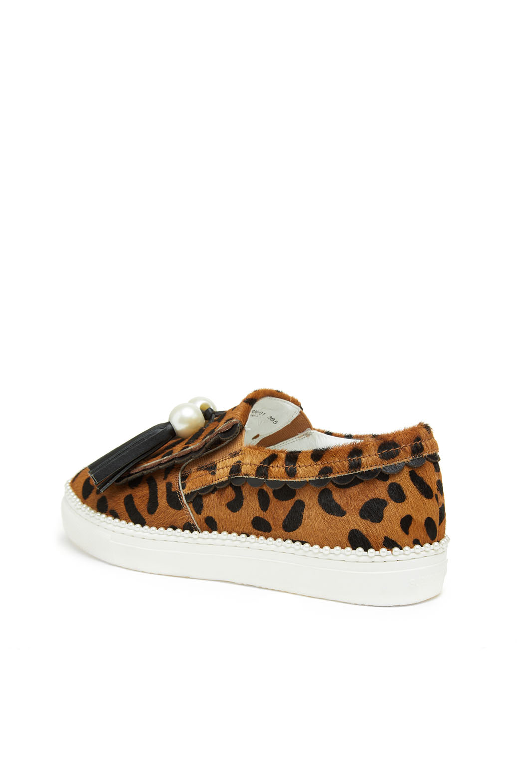 - 슈콤마보니만의 개발 몰드를 사용한 귀엽고 여성스러운 테슬 슬립온.- 커다란 진주 장식과 테슬, 물결 모양의 디테일이 포인트.- 이번 시즌 유행 패턴인 레오파드 패턴으로 세련된 외관.- 웰트부분 진주 장식으로 러블리하며 슈콤마보니만의 포인트가 들어간 슬립온 아이템.