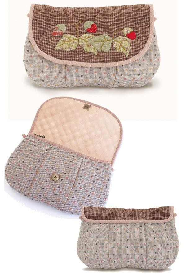 3つのいちごが可愛いふた付きのポシェットが作れるキットです。ふんわりと丸みのある形は見た目の可愛さだけでなく、荷物もしっかり入る優れもの。フタにはマグネットボタン、ポーチの口部分にはファスナーが付いています。やわらかな陽射しの中にいるような優しい色合いは自然と心がなごみます。 |