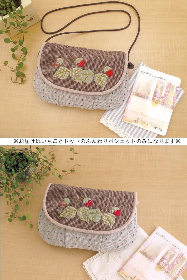 | 3つのいちごが可愛いふた付きのポシェットが作れるキットです。ふんわりと丸みのある形は見た目の可愛さだけでなく、荷物もしっかり入る優れもの。フタにはマグネットボタン、ポーチの口部分にはファスナーが付いています。やわらかな陽射しの中にいるような優しい色合いは自然と心がなごみます。 |
