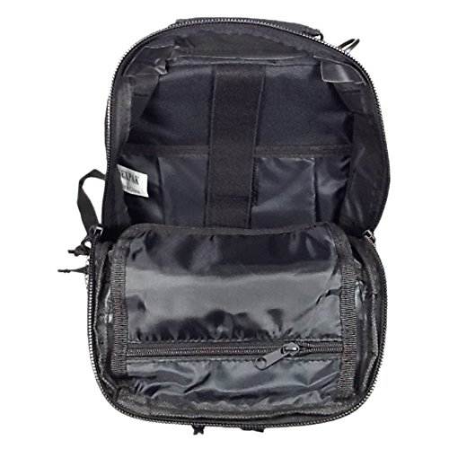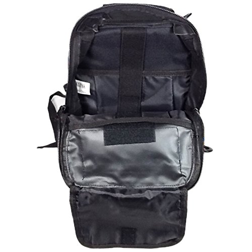 -. Feature : Perfect for outdoor use! / Wide and Thick sling shoulder strap, Black / Capacity: 800 cu. in. / Size: 12"(Height) x 8"(Width) x 8"(Depth) / Multiple MOLLE style straps and Audio pass-through hole in front pocket