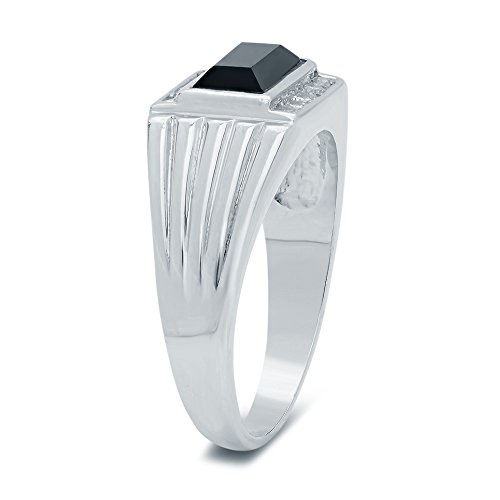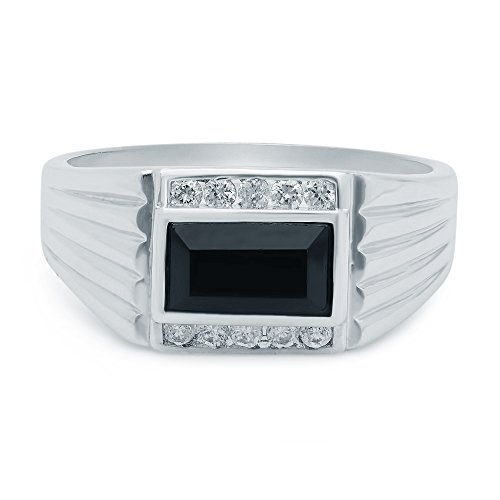 Brand, Seller, or Collection Name:The Bling Factory Metal stamp:Not stamped Metal:rhodium-plated-brass Material:metal Gem Type:Cubic zirconia Setting:bezel-setting Width:11 millimeters Resizable:No Number of stones:1 Model number:RL-MN67 Stone shape:Baguette Minimum color:black Stone Creation Method:Simulated Stone Length:10 millimeters Stone Height:6 millimeters