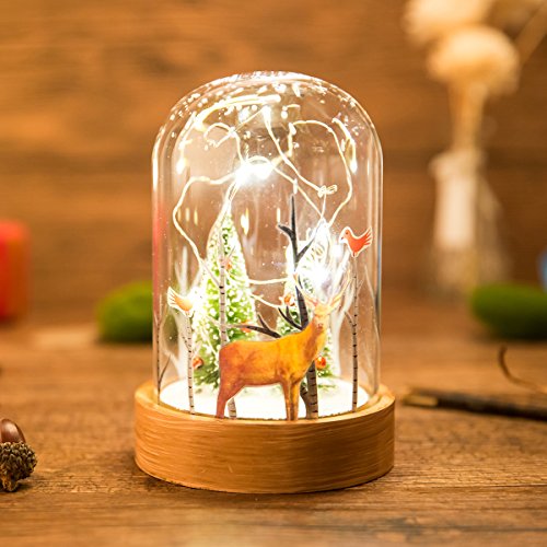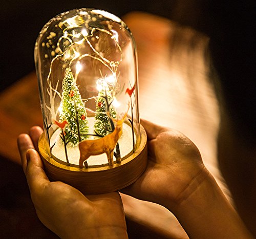 Micro Christmas Tree Landscape Light Table Lamp Glass Dome Lamp Wishing Bottle Night Light Tabletop Decoration for Party Home Bedroom & Best Xmas Gift for Adults kids