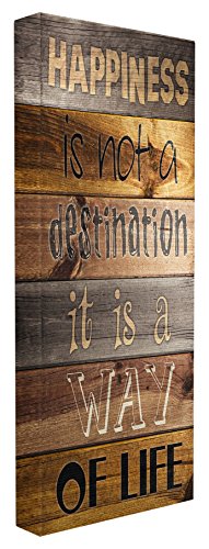 Stupell Home Décor Happiness Destination Planked Typography Stretched Canvas Wall Art, 10 x 1.5 x 24, Proudly Made in USA
