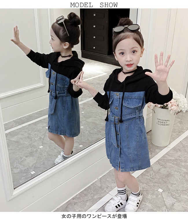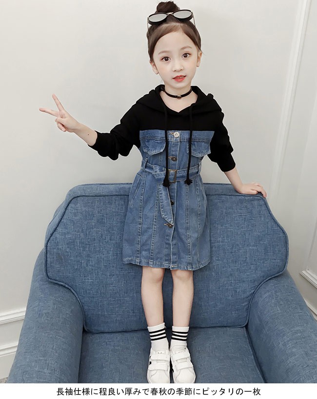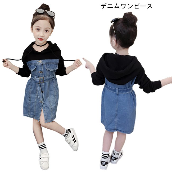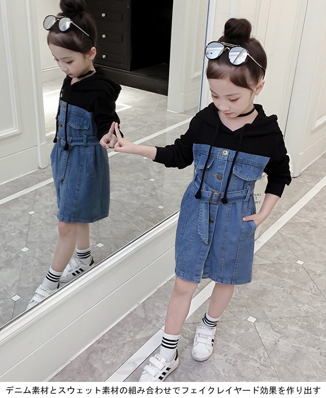デニムワンピ 子供用 ワンピース フード付き 膝丈 長袖 フェイクレイヤード 女の子 膝丈ワンピース 女児 春秋物 デニム 長袖ワンピース女の子用のワンピースが登場デニム素材とスウェット素材の組み合わせでフェイクレイヤード効果を作り出すフード付きのデザインはキュートなポイントでもあり、機能性もアップ長袖仕様に程良い厚みで春秋の季節にピッタリの一枚カラー:写真色素材 綿混紡サイズ(cm) 100 110 120 130 140 150100 着丈57 バスト74 肩幅34110 着丈61 バスト78 肩幅35120 着丈65 バスト82 肩幅37130 着丈70 バスト86 肩幅38140 着丈75 バスト90 肩幅40150 着丈80 バスト94 肩幅41ご注意:※サイズは平置きサイズです。素人採寸ですので、若干の誤差がございます、ご了承ください。