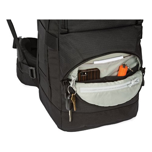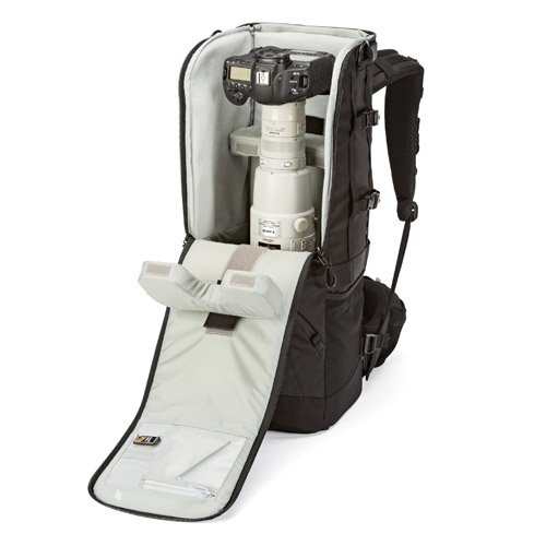 Fits a Pro DSLR with telephoto lens attached (such as 600mm f/4L) OR 800mm lens unattached, lens hood, tripod, accessories and small personal items