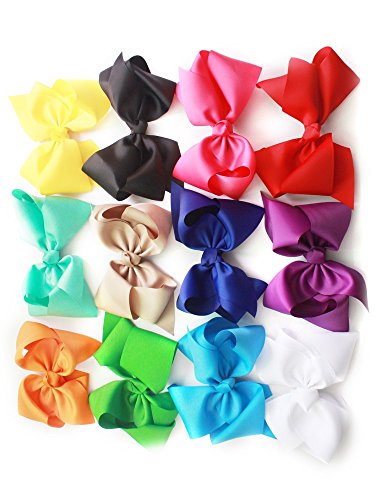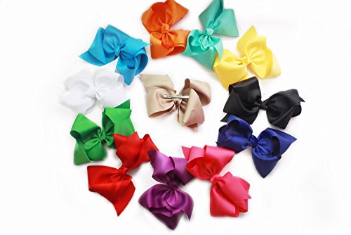 Cellot boutique Hair bow size:8 inch ;Made from 3 inch grosgrain ribbon; Attached with alligator clips. Set of 12 colors; Handmade and available for almost all occasions when is needed.