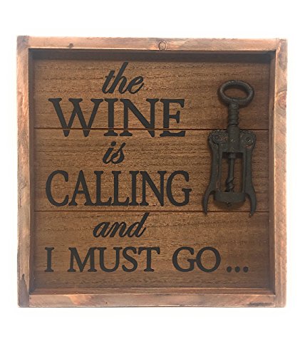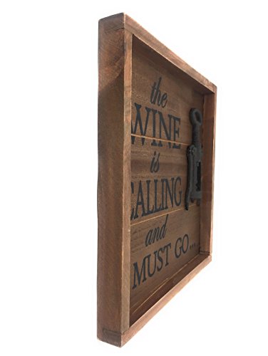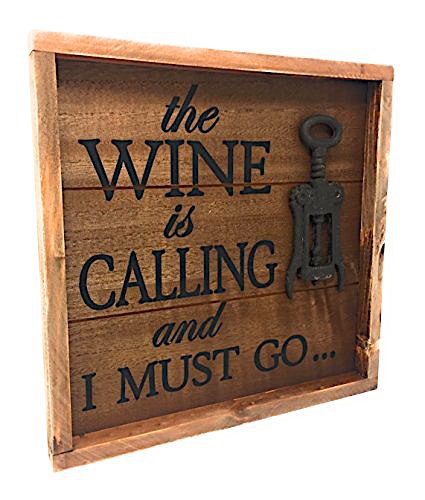 VINEYARD WALL DÉCOR: Framed wall art made of real wood with words etched "The Wine is Calling and I Must Go..." featuring a rustic wine opener for an eye-catching three-dimensional (3D) look.