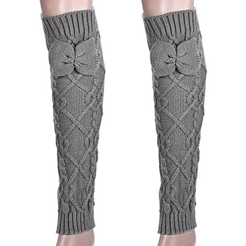 -. Title : RICCOS (TM) Women's Fashion Winter Thinkened Knitted Warm Over Knee Cuffs Leg Warmer with ribbon decoration(Grey)
