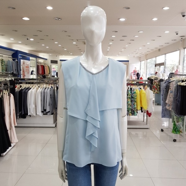 목선 큐빅장식 브이넥 민소매 블라우스-CA7U4-WKT070-730L/블루