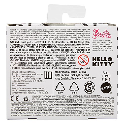 -. Binding : Toy -. Brand : Barbie -. EAN : 0887961603064 -. Feature : Barbie doll (sold separately) has captured some of her favorite influences in a cool collection of clothing / These tops incorporate recognizable icons into cool prints from iconic brands Hello Kitty, Little Twin Stars, Chococat and My Melody / Mix and match with other Barbie doll clothing to spark imaginations and storytelling fun (each sold separately, subject to availability) / More variety makes collecting Barbie dolls and fashions even more fun -collect them all / Collect them all -. IsAdultProduct : 0 -. Label : Mattel -. Manufacturer : Mattel -. Model : FLP44 -. MPN : FLP44 -. NumberOfItems : 1 -. PackageQuantity : 1 -. PartNumber : FLP44 -. ProductGroup : Toy -. ProductTypeName : TOYS_AND_GAMES -. Publisher : Mattel -. ReleaseDate : 2017-08-22 -. Studio : Mattel -. Title : Barbie Fashions Hello Kitty Gray Tank Top -. UPC : 887961603064 -. Warranty : No Warranty