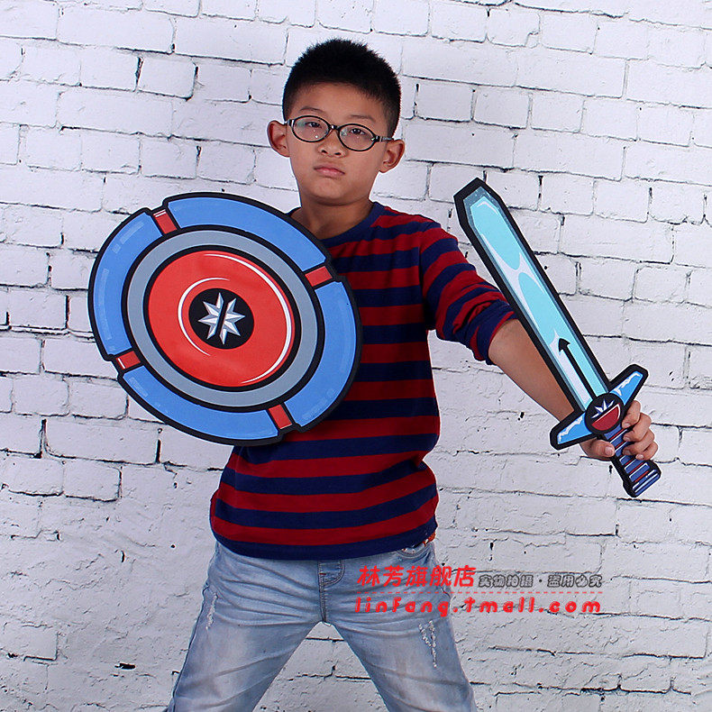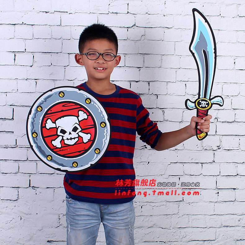 林芳 儿童万圣节表演美国队长装扮面具海盗刀勇士刀剑盾牌道具