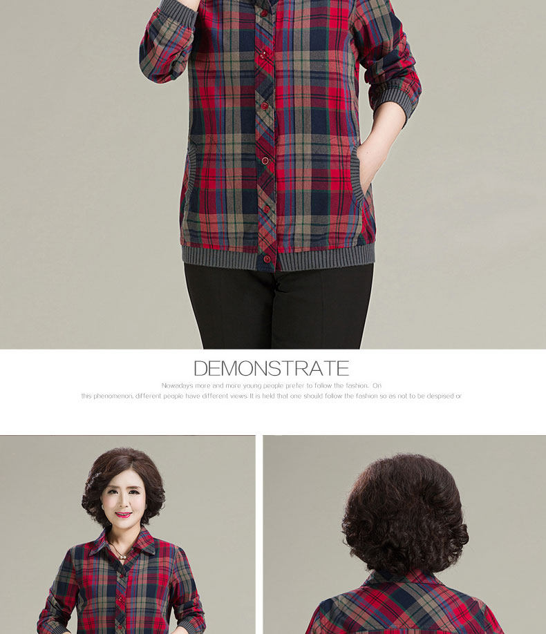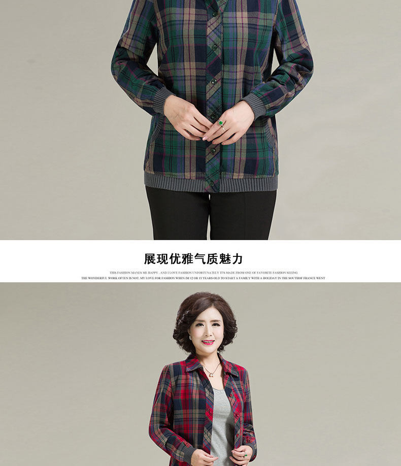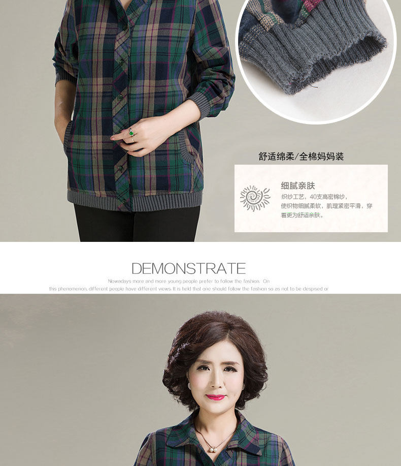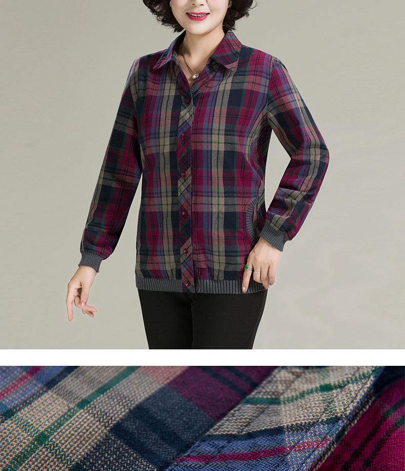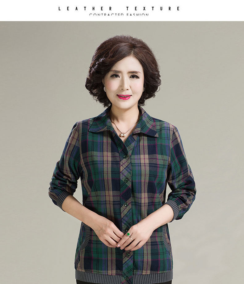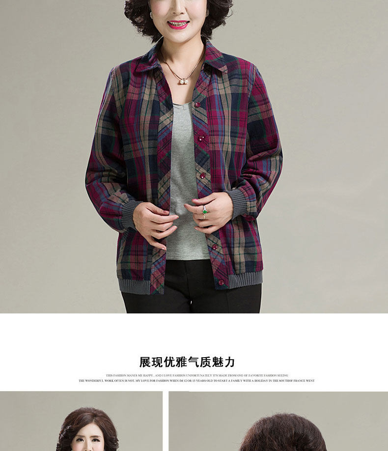 中老年衬衫女长袖休闲格子薄外套女春秋新款中年妈妈宽松格子上衣