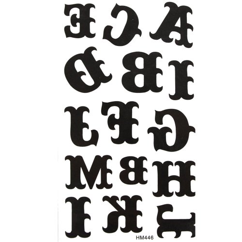 -. Binding : Toy -. Brand : King Horse -. EAN : 0610098995630 -. Label : King Horse -. Manufacturer : King Horse -. MPN : HM446 -. NumberOfItems : 1 -. PackageQuantity : 1 -. PartNumber : HM446 -. ProductGroup : Health and Beauty -. ProductTypeName : TOYS_AND_GAMES -. Publisher : King Horse -. Studio : King Horse -. Title : GGSELL King Horse Waterproof tattoo sticker black totem letters of the alphabet A to M -. UPC : 610098995630