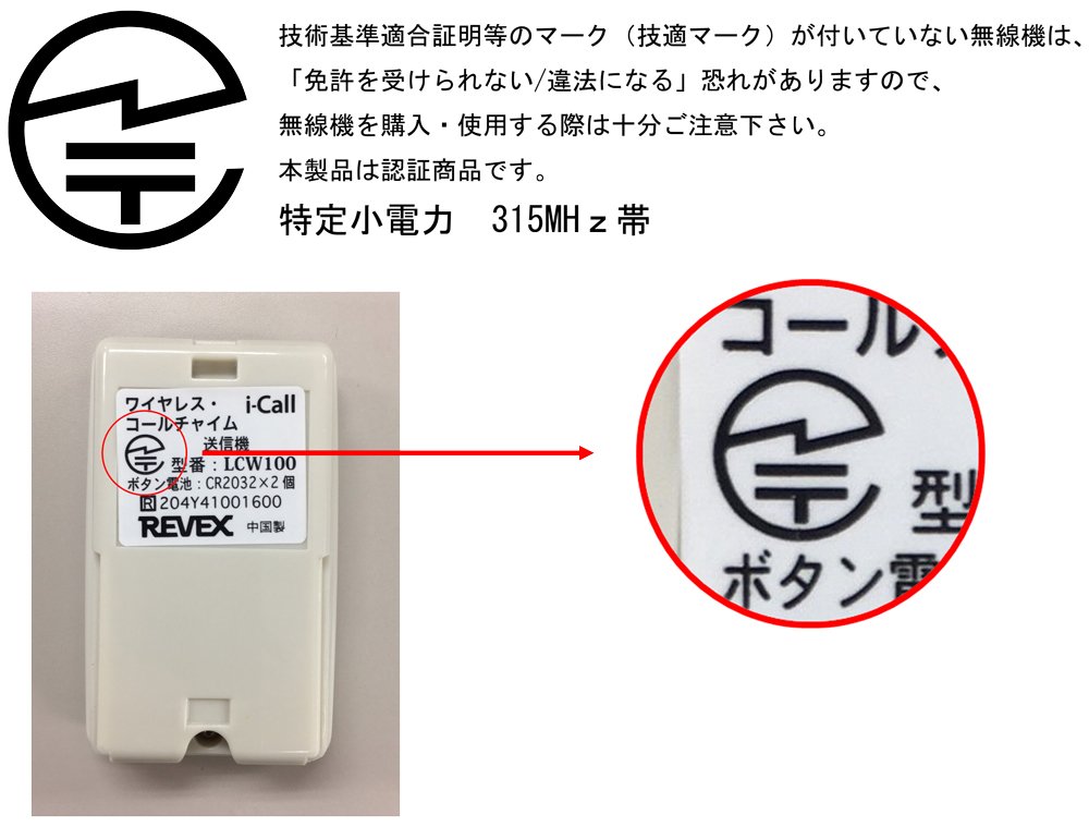 Push button Transmitter power supply DC 6 V button battery CR 2032 × 2 (attached for testing) Battery life approximately 1 year (transmitted 10 times a day) Transmission frequency 314.8 MHz ID number of codes 256 styles Selectable from 3 songs 1. Ping Pong 2