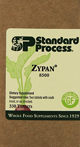 -. Binding : Health and Beauty -. Brand : Standard Process -. EAN : 0812122011990 -. Feature : Standard Process Zypan 8500Dietary Supplement -. IsAdultProduct : 0 -. Label : Standard Process -. LegalDisclaimer : Disclaimer: While we work to ensure that product information is correct, on occasion manufacturers may alter their ingredient lists. Actual product packaging and materials may contain more and/or different information than that shown on our Web site. We recommend that you do not solely rely on the information presented and that you always read labels, warnings, and directions before using or consuming a product. For additional information about a product, please contact the manufacturer. Content on this site is for reference purposes and is not intended to substitute for advice given by a physician, pharmacist, or other licensed health-care professional. You should not use this information as self-diagnosis or for treating a health problem or disease. Contact your health-care provider immediately if you suspect that you have a medical problem. Information and statements regarding dietary supplements have not been evaluated by the Food and Drug Administration -. Manufacturer : Standard Process -. Model : 8500 -. MPN : 8500 -. PackageQuantity : 1 -. PartNumber : 8500 -. ProductGroup : Health and Beauty -. ProductTypeName : HEALTH_PERSONAL_CARE -. Publisher : Standard Process -. Size : 330 Tablets -. Studio : Standard Process -. Title : Standard Process Zypan 8500 by Standard Process, 330 Tablets -. UPC : 812122011990
