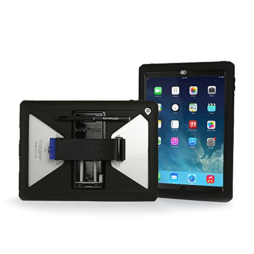 MAX Cases Shield Xtreme Case for iPad Air-Military Grade Triple Protection Case Provides Shock & Impact Protection, Tri-Molded Polycarbonate/TPU/Silicone Sleeve, Built-In Kickstand, Handstrap - Black