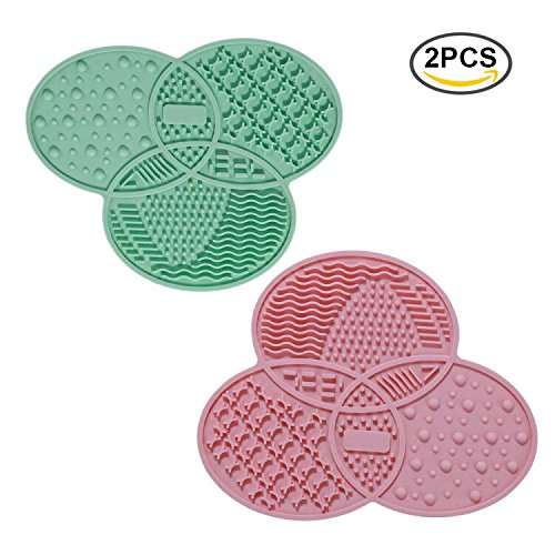 G2PLUS Makeup Brush Cleaning Mat, 5.6’’ x 4.5’’ Silicone Brushes Cleaner Pad with Suction Cups, Pack of 2 (Pink and Green)