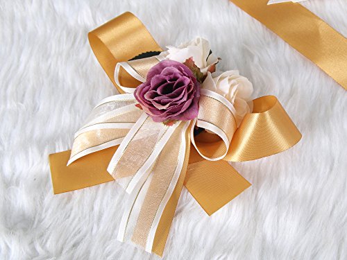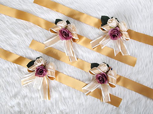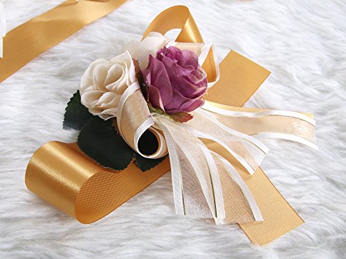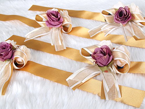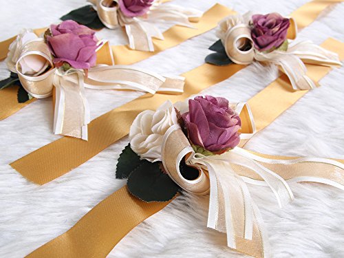 Luxury Wrist Corsage Flower Wedding Bridal Bridesmaid Ceremony(Pack 4) (Purple)