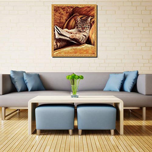 5D DIY Diamond Painting kit Rhinestone Embroidery Cross Stitch Arts for Craft Home Wall Decor,Reading Book Cat
