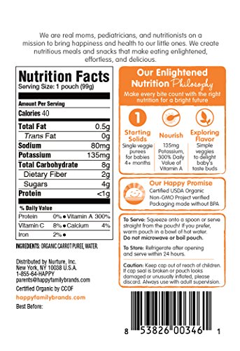 -. Title : Happy Baby Organic Stage 1 Baby Food, Starting Solids, Carrots, 3.5 oz (Pack of 8)