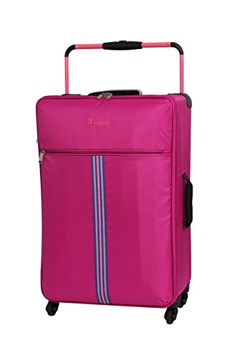 Studio : IT Luggage Parent Code Publisher : IT Luggage Parent Code Binding : Apparel Product Description Traveling has never been smoother with the World's Lightest Tourer collection from it luggage. This ultra-lightweight bag features a durable fiberglass frame with a wide telescoping handle. This unique construction allows for a flat packing bed for optimized volume and crease-free packing. Complete with 4 easy-glide wheels and spacious front pockets - this collection is a functional yet stylish essential for your next vacation. 0